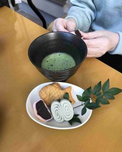 お抹茶が好きな入居者様がいらっしゃり、美味しそうに召し上がられていました!