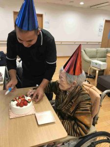 マナハウスへ戻ってきたらフロア職員と入居者様と誕生日会しました🎵