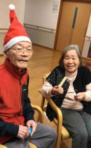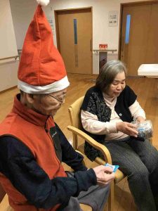 “ありがとう☺何かな?”と言われる奥様 と 中身を見てお菓子だと分かると、プレゼントしたはずのKサンタが“わしにも1つちょうだい”と…(笑)