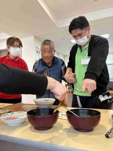 普段の献立にも麺の日はありますが、自分達で具材を選んだり、目の前で茹でて湯切りしてくれたうどんは格別の様で、みなさん笑顔でたくさん召し上がられました✨