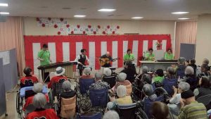 迫力満点の飯倉太鼓のパフォーマンスや、ギターが得意なご入居者様を交えての楽器演奏で敬老会を盛り上げて頂きました。
